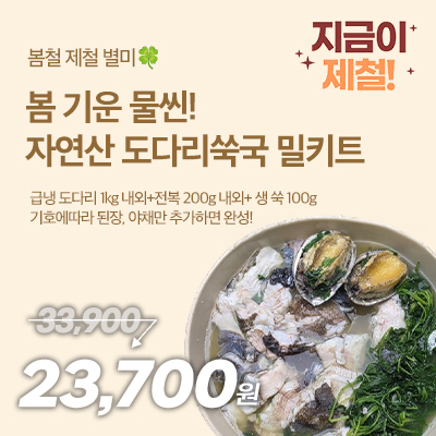 기호에 따라 야채만 추가하면 완성!★제철밥상★ [HY] 자연산 도다리 쑥국 밀키트 1세트 (급냉 도다리 1KG내외+전복 200g 내외+생쑥 100g)