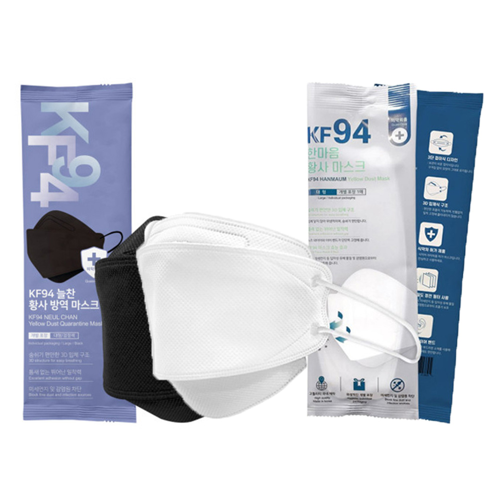 [한스웰] 3중필터 KF94 국산 방역마스크 대형 블랙&화이트 30매,50매 선택형