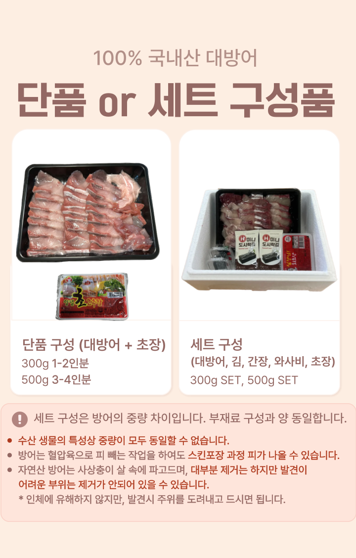 | 상품구성 | 방어 단품 300g or 500g,방어SET 300g or 500g |