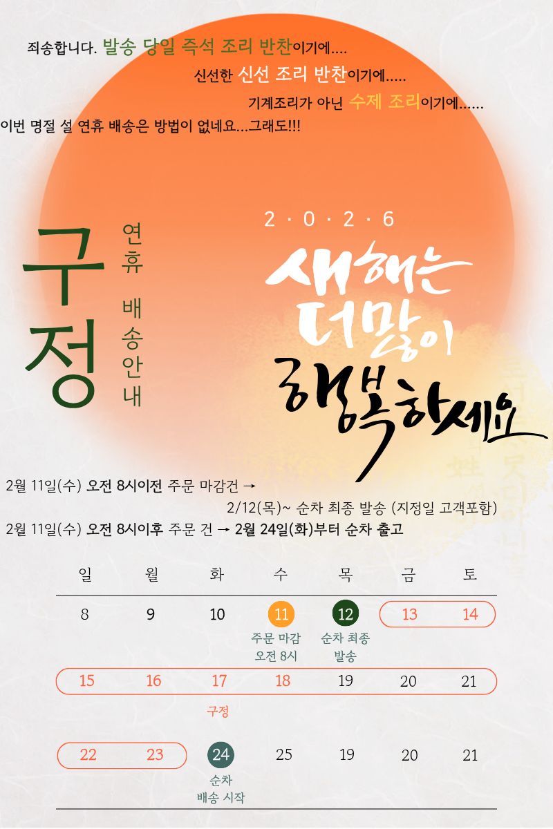 2.배송은 지역에 따라 2~3일 소요를 기본으로 하나, 주문량이 많거나 택배사의 사정, 천재지변 등의 사유로 유동적일 수 있습니다.