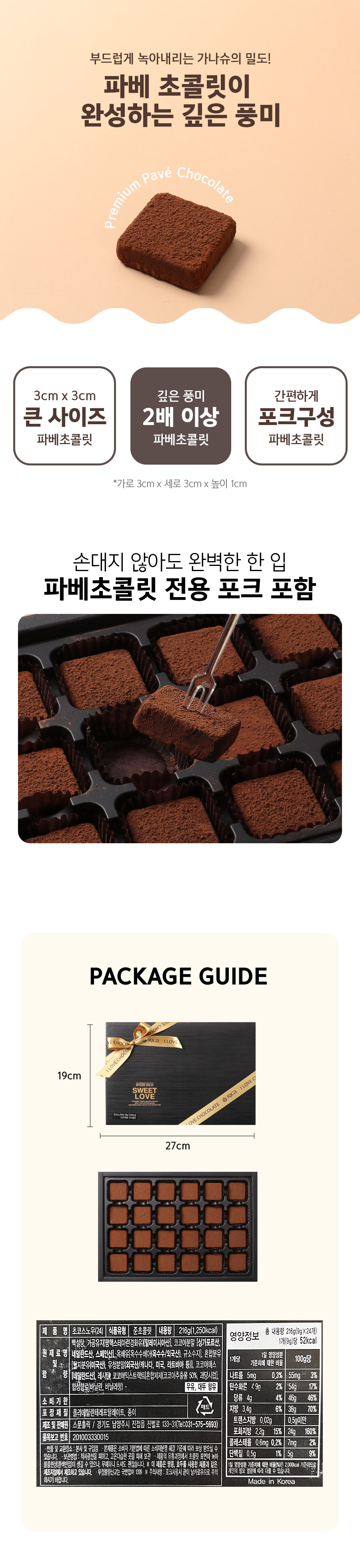 [스위트초코]수제 파베 생초콜릿 135g/216g