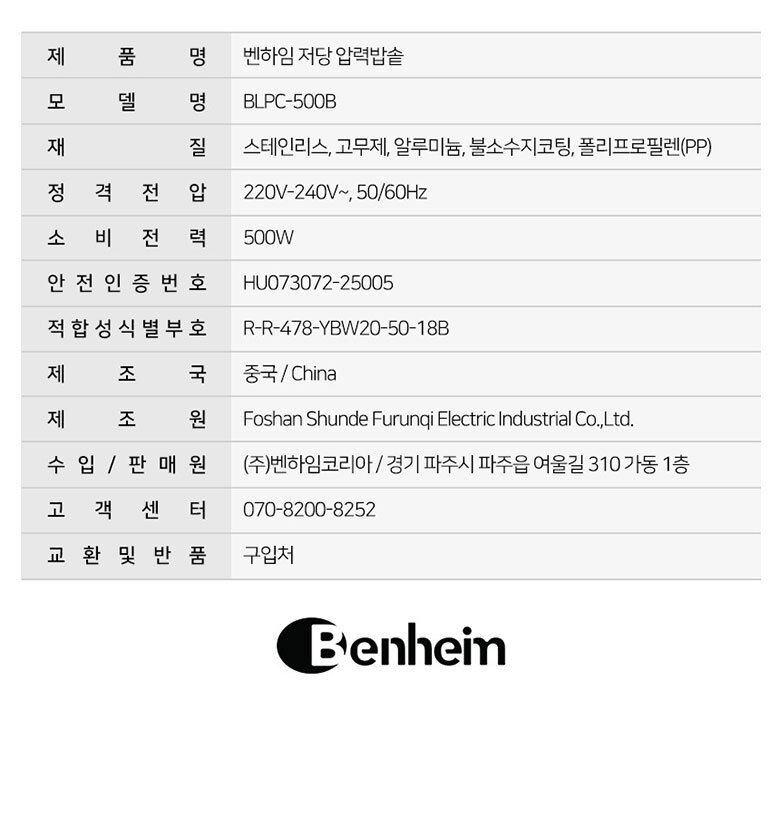 [벤하임] 저당 압력 전기밥솥